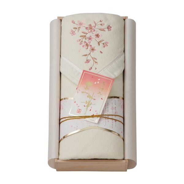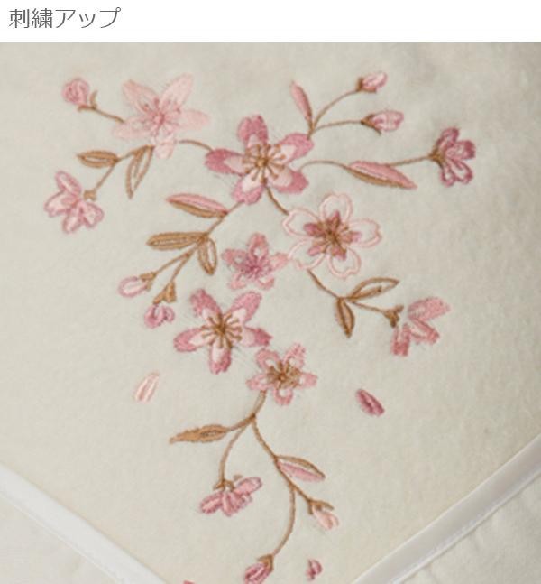 上品なさくらの刺繍が施されたシルク混綿毛布です。