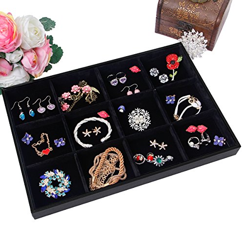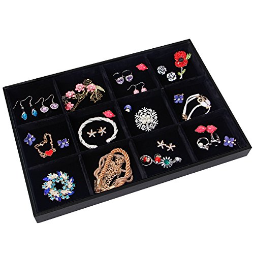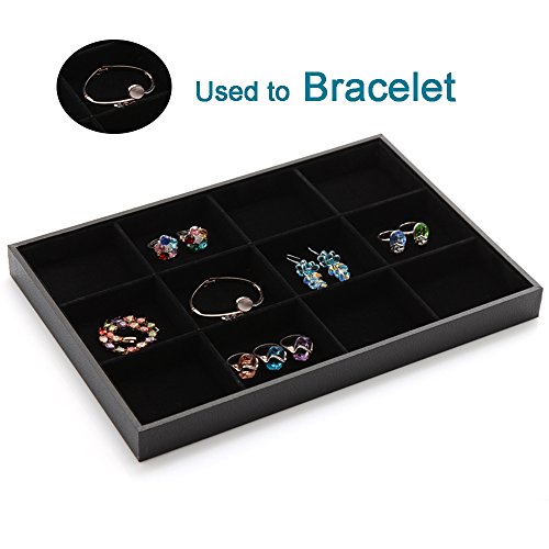 💍MULTI-SECTIONAL: Features 5 removable dividers to separate the jewelry tray into 12 equal sectional compartments. The compartment size and compartment number can be adjusted by removing or adding the divider to suite your storage needs.