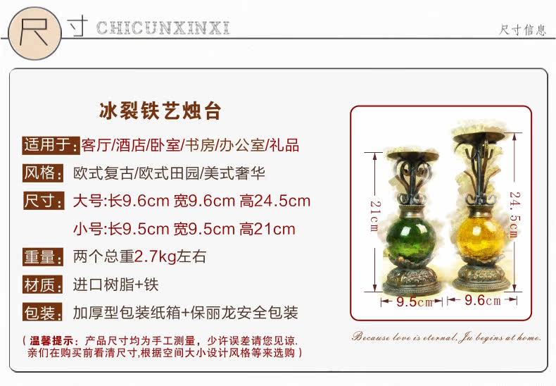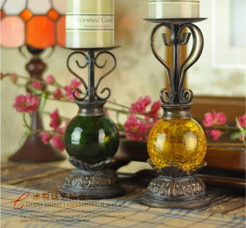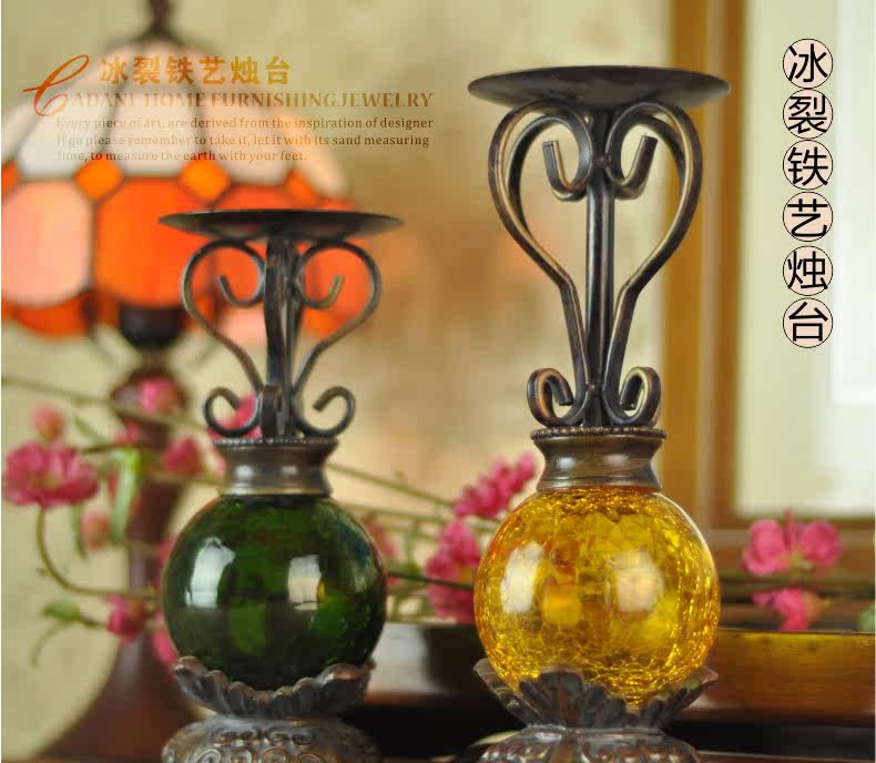 美式 创意冰裂玻璃香薰蜡烛台 喜庆浪漫婚庆用品家居装饰品摆件