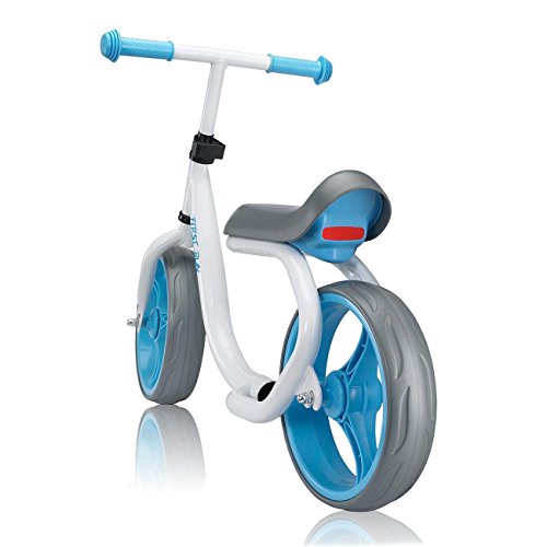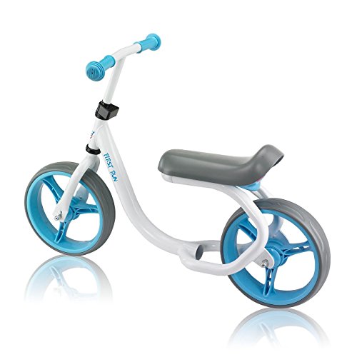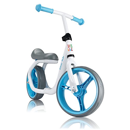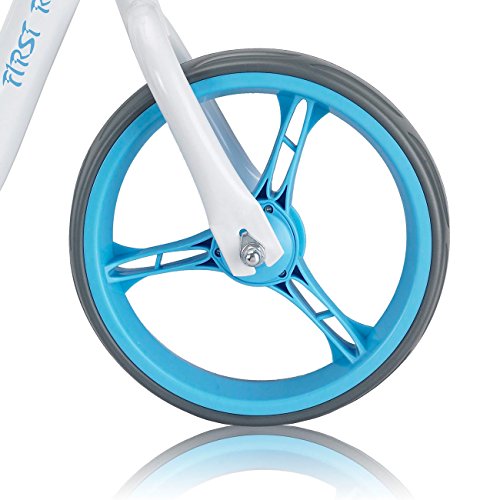 FARBENFROH: Der weisse, pulverbeschichtete Stahlrahmen des 12 Zoll Laufrads bildet die stabile und praktisch unverwustliche Basis und wird durch die farbigen Akzente im trendigen Blau zum absoluten Hingucker