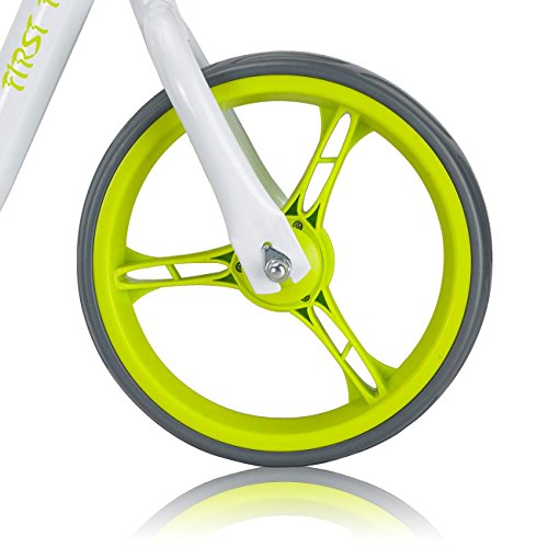FARBENFROH: Der weisse, pulverbeschichtete Stahlrahmen des 12 Zoll Laufrads bildet die stabile und praktisch unverwustliche Basis und wird durch die farbigen Akzente in trendigen Farben zum absoluten Hingucker