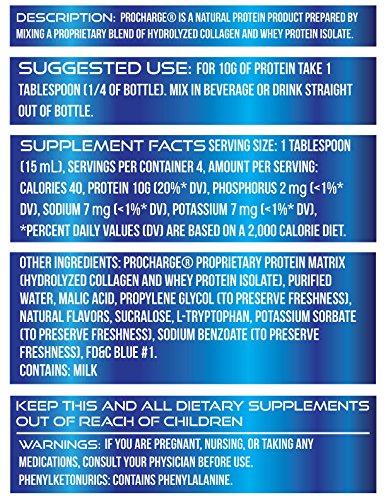 -. Title : ProCharge Liquid Protein Blue Raspberry - 40g Liquid Protein Shot | Whey Protein Isolate, Hydrolyzed Collagen, BCAAs | Gluten free, Lactose free. Non-GMO | Bariatric protein, Sugar free