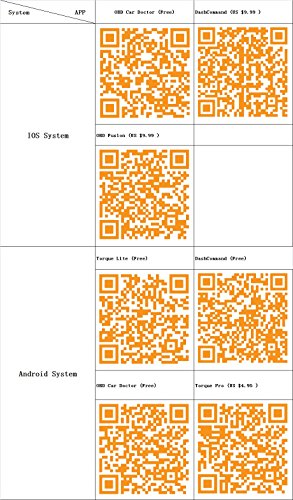 -. Feature : 【Most effective car scanner】Diagnose Your Car - Like a Pro and instantly transform your car into a Smart Car! Quick diagnose scan and clear trouble codes, reset the check engine light. You can diagnose any car problem and unlock massive amounts of data on your car's performance in real time!Save your money and time. / 【Smart scanning】Display current sensor data, including Engine RPM, Calculated Load Value, Coolant Temperature, Fuel System Status, Vehicle Speed, Short Term Fuel Trim, Long Term Fuel Trim, Intake Manifold Pressure, Timing advance, Intake Air Temperature,Air Flow Rate, Absolute Throttle Position, Oxygen sensor voltages/associated short term fuel trims, Fuel System status, Fuel Pressure. / 【Support Cars】Work with all 1996 and newer vehicles that are OBD2 compliant including but not limited to GM, Chevrolet, Honda, TOYOTA, Mazda, Ford, Dodge, Subaru,BMW, Audi,Subaru, Hyundai, Kia, Chyrysler, Benz, Fiat,etc. / 【Free Third Party APP】Connects to your Android phone or iphone using a 3rd party app. Supports Torque Pro,Torque lite, App cost ranges from $0-$9.9 for specialty apps depending on your needs.OBD2 bluetooth car code reader works with all 1996 to 2018 cars and small trucks in the United States. / 【Warranty Guarantee】One Year Warranty! Please feel free to contact us first if you have any problem after receiving this product ,we will try our best to satisfy you! If you don't know how to use please contact us.