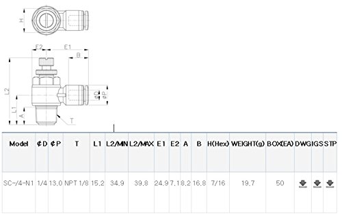 PneumaticPlus Push-to-Connect Air Flow Control Valve, Elbow, 1/4" Tube OD x 1/8" NPT