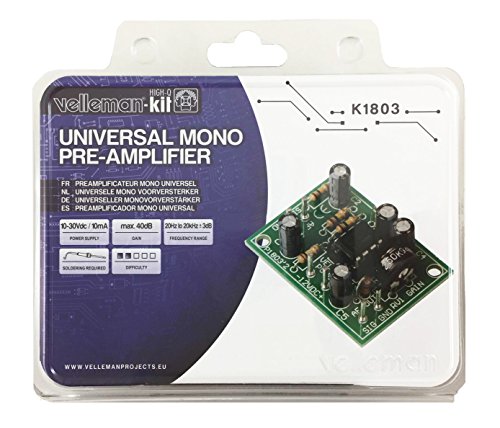 Universal Mono Pre-Amplifier Kit - K1803 by Velleman. Intermediate level soldering kit