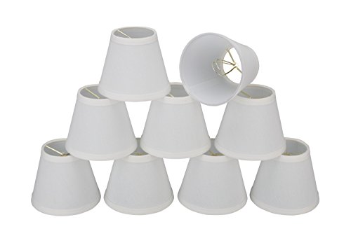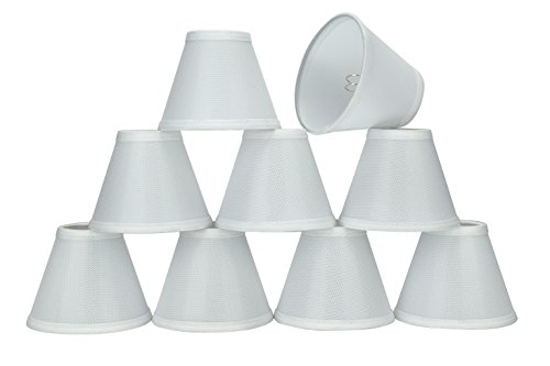 Aspen Creative is dedicated to offering a wide assortment of attractive and well-priced portable lamps, kitchen pendants, vanity wall fixtures, outdoor lighting fixtures, lamp shades, and lamp accessories. We have in-house designers that follow current trends and develop cool new products to meet those trends. Aspen creative offers a two pack of hardback empire shape transitional chandelier clip-on lamp shades in white. Made with network fabric. Its size is 3 inch top, 6 inch bottom and 5 inch slant height. Clip-on style fitter designed for bare bulbed chandeliers and wall sconces that use candelabra bulbs, bent tip style bulbs not recommended (not included). Our hardback shades use Virgin Styrene backing board to produce a warm, natural & smooth light – more appealing than shades made with recycled Styrene board that can crack & yellow over time.Feature