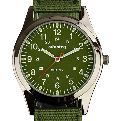 -. Title : INFANTRY Mens Luminous Military Army Analog Wrist Watch 12/24Hr Green Nylon Band, GLow In The Dark