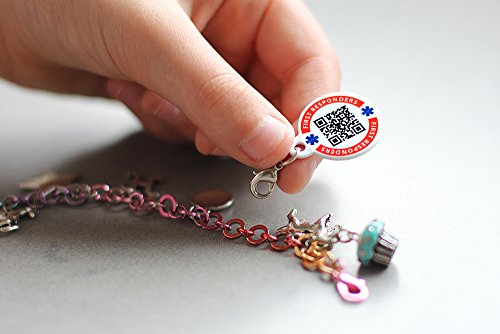 Dynotag Web/GPS Enabled QR Code Smart Medical and Emergency Contact Information Charm Bracelet Tag - with Lobster Clasp