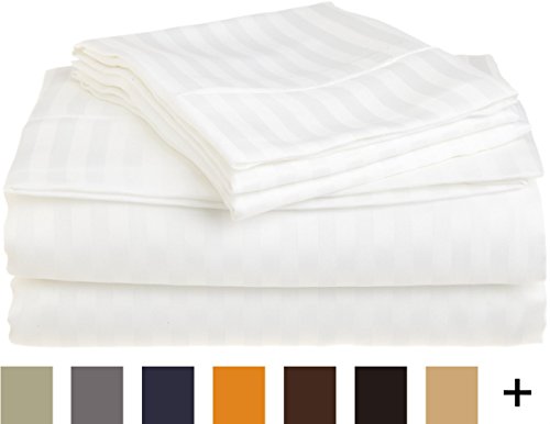 Superior 1500 Series 100% Brushed Microfiber 4-piece Queen Sheet Set Stripe, White - Deep Pocket, Super Soft and Wrinkle Resistant