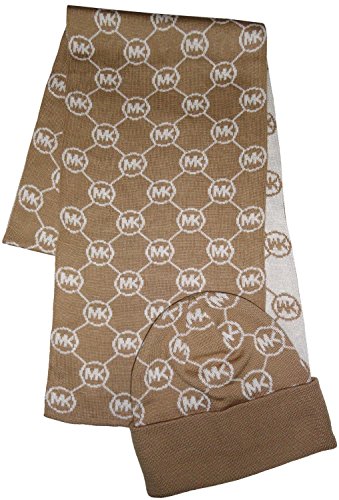 -. Title : Women's Logo Knit Scarf & Beanie Hat Set, Camel /Cream, One Size