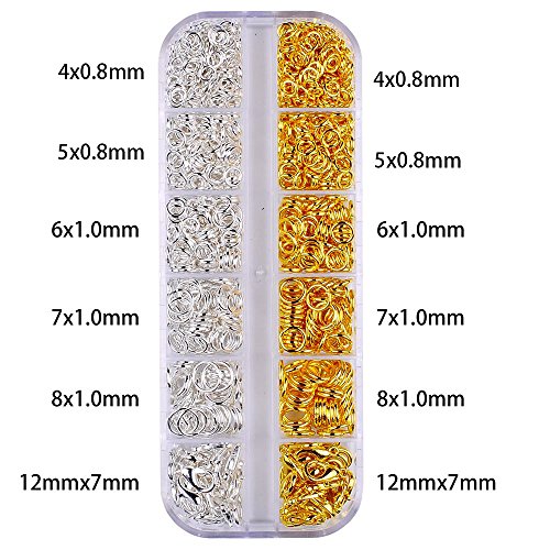 - Jump rings:4mm in diameter, 0.8mm thick(about 350pcs),5mm in diameter, 0.8mm thick(about 210pcs),6mm in diameter, 1mm thick(18g about 150pcs),7mm in diameter, 1mm thick(about 120pcs),8mm in diameter, 1mm thick(about 90pcs)