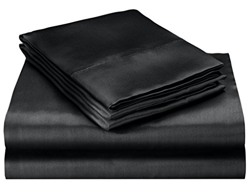 ELEGANTE Collection Pure Silky 4pc Bed Sheet Set - Queen Size, Black