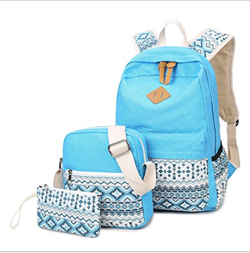 -. Title : WKBY 3pcs/Set Women Girls School bag Canvas Laptop Backpack Shoulder Travel Bags bookbag