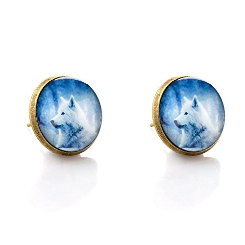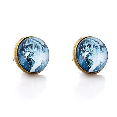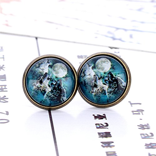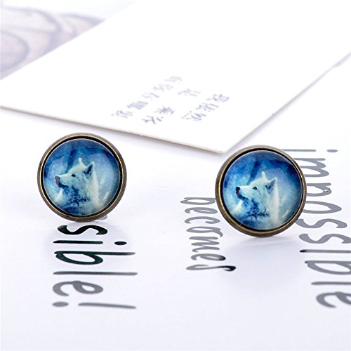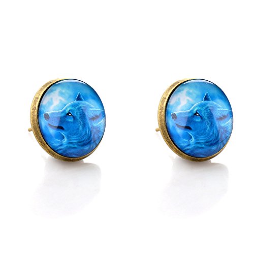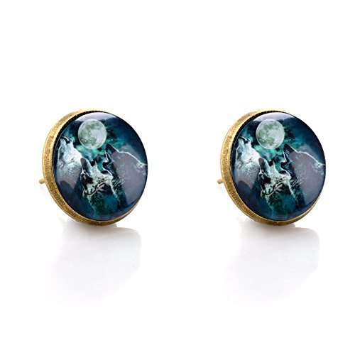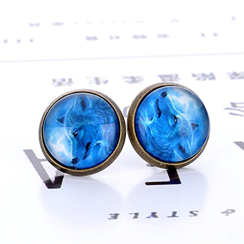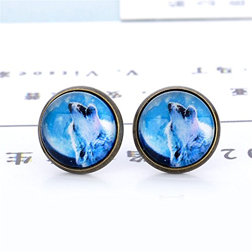 (LUREME)/Accessories/Belts Buckles/DIRECT FROM USA/Lureme Bronze Color Glass Time Gemstone Cool Wolf Stud Earrings for Women and Grils (er005863)