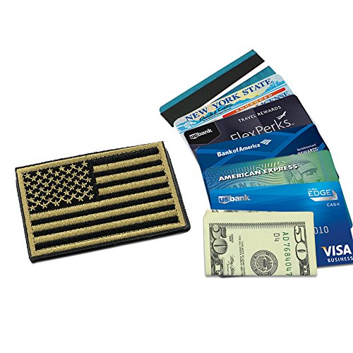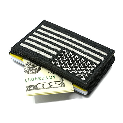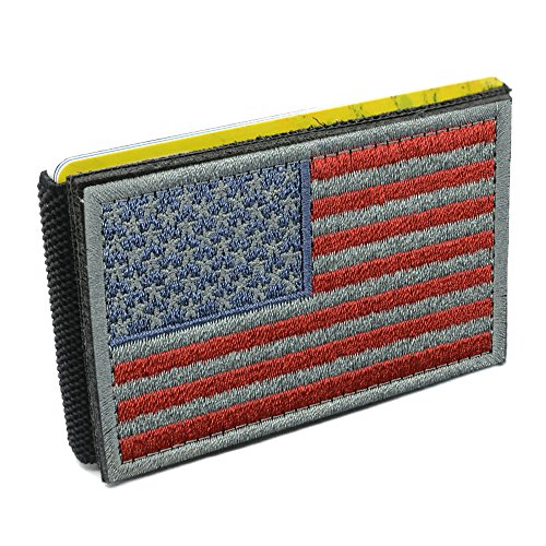 -. Binding : Apparel -. Brand : iCraft -. Department : mens -. Feature : Handmade with Elastic Band and Embroidery USA Flag Tactical Patch / You can change any tactical patch you like with velcro hook backing measured around 3"x 2". / Lightweight - weighs 0.6 oz - Lighter than the cash and cards in it. / Holds 1-8 Cards Comfortably - however, more cards can be added / Dimensions: Length: 3.3" Height:2" Width: 0.4" -. ProductGroup : Apparel -. ProductTypeName : ACCESSORY -. Title : iCraft-Slim Front Pocket USA Flag Tactical Patch Wallet