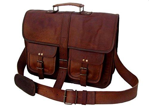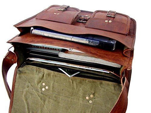-. Brand : Indian Handmadecraft Vintage -. Feature : Size (in inches) : 16" width x 12" height x 6" depth / Cross body belt, internal 2 compartments and 2 zipper, one large pocket on front side, back side 1 zipper, front 2 small pockets strong / Perfect to use as a: messenger bag for men leather, messenger bag for women leather, messenger bag leather, leather golf bag, laptop bag leather, leather bags, leather camera bag, leather crossbody bag, leather computer bag, business leather bag, messenger bags leather, leather laptop bag for men. / 100 genuine leather, we use olive green heavy duty canvas for all our bags and branded ykk zippers. -. ProductGroup : Apparel -. ProductTypeName : LAGE -. Title : IHV 16" Vintage leather Messenger Bag for Mens Laptop Bag Office Briefcase