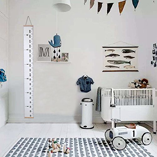 Baby Height Growth Chart Wall Hanging Ruler Height Measurement Chart with Wood Frame, Brief Style Kids Toddlers Room Wall Decoration, 77.5''x7.9''