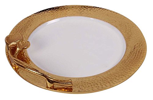 SouvNear 190803081273 Metal Tray with Leaf Handle and Hammer Effect, 12"