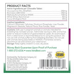 -. Feature : Vet's Best Aspirin-Free Aches & Pains for dogs helps to quickly relieve temporary discomfort due to regular exercise and normal daily activity / A potent asP.R.In-free formula with key natural ingredients - Glucosamine HCL, MSM, Bromelain, Yucca, and White Willow Bark with aspirin-free salicin / Perfect for very active dogs involved in physical training and competitions, and senior dogs to relieve sore, stiff muscles and joints / For dogs and puppies 10 months or older, and can be given 2 times daily (follow supplement directions) / Contains 2 bottles (Total of 100 chewable tablets) - Made in the USA / VET 'S BEST aspirin-free Beschwerden & Schmerzen für Hunde hilft eine schnelle Linderung von vorübergehenden Beschwerden durch regelmäßige Übung und normalen täglichen Aktivitäten / Eine wirksame asP.R.In-free Formel mit Schlüssel natürliche Inhaltsstoffe - Glucosamin HCL, MSM, Bromelain, Yucca, und weiße Weidenrinde mit aspirin-free salicin / Perfekt für sehr aktive Hunde bei körperlichen Training und Wettkampf, und Senior Hunde zu lindern schmerzende, steife Muskeln und Gelenke / Für Hunde und Welpen Zuschlag von 10 Monate oder älter, und kann gegeben werden 2 mal täglich (Follow Richtungen) / Enthält 2 Flaschen (insgesamt 100 Kautabletten) - Hergestellt in den USA / 兽医的最佳 aspirin-free 疼痛和帮助,能迅速缓解临时不适由于经常运动狗狗,一般日常活动 / 一种有效 asP.R.In-free 奶粉,主要天然成分 - 氨基葡萄糖 HCL 、 MSM 、菠萝蛋白酶、 Yucca ,白柳树皮, aspirin-free Salicin / 完美非常活跃的狗参与体育训练和比赛,以及高的狗狗,缓解酸痛,僵硬的肌肉和关节 / 对于犬和幼犬10个月或以上,而且可以将给出每天 ( 根据补充2次指南 ) / 含2瓶(共100咀嚼片 ) - 美国制造