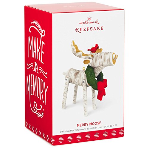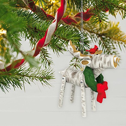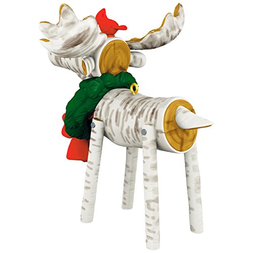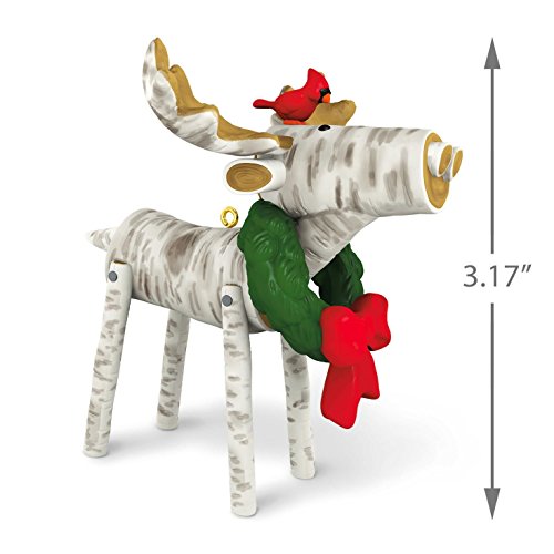 Outdoor and nature lovers will love this woodsy Christmas ornament of a holiday moose made of faux white birch wood. This festive creature wears a green wreath around its neck and a red cardinal atop its head. Learn more about Keepsake Ornaments.