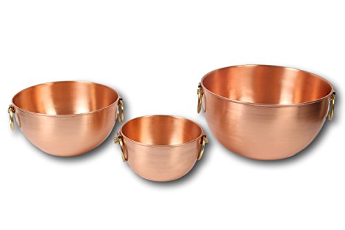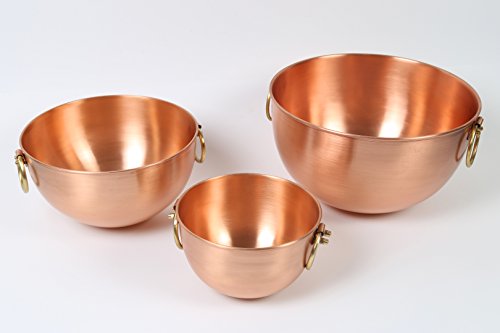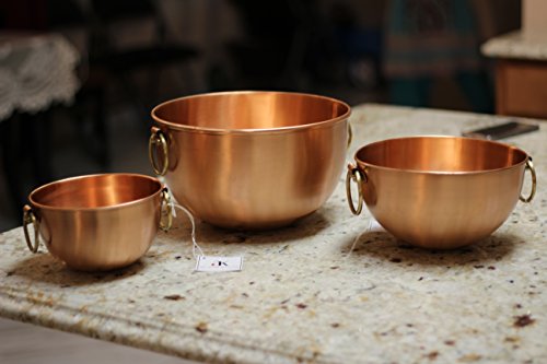 Palmyra by PureCopperware / Set of 3 Heavy Solid 100% Copper beating bowls, Mixing Bowl, Multipurpose Use for Candy, Salad, Egg Beating / Decorative Copper Bowls for your Kitchen / 100% Handcrafted