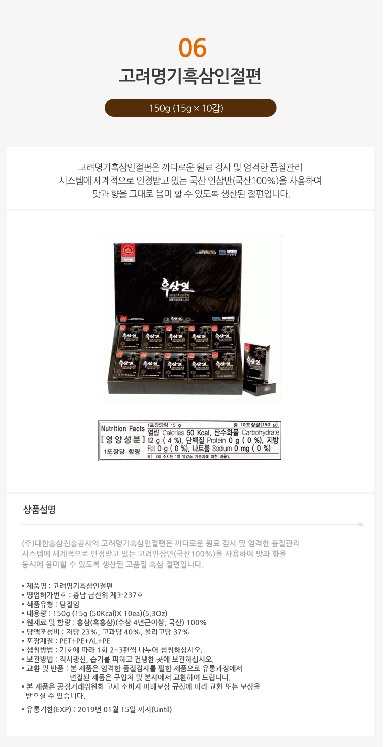 - 원재료명 및 함량홍삼(흑홍삼,4년근이상,국산)100%