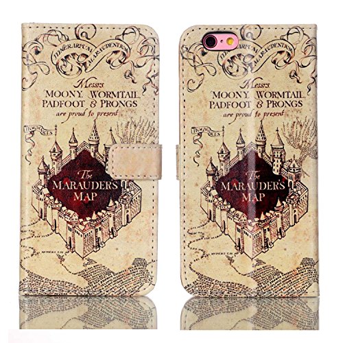 Hogwarts Marauder's Map Pattern Slim Wallet Card Flip Stand Leather Pouch Case Cover For 2014 Apple iphone 6 4.7 inch New Arrivel- Cool as Great Xmas Gift (Shipped from US, 3-7 days to delivery!)