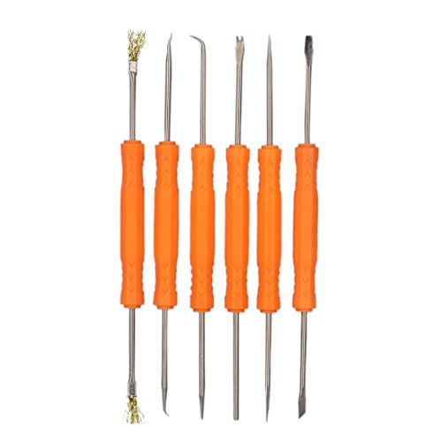 - There are 6pcs double-sided soldering iron accessories to meet the demand of various soldering. Such as press, cutting, scraping, hook and brush etc.