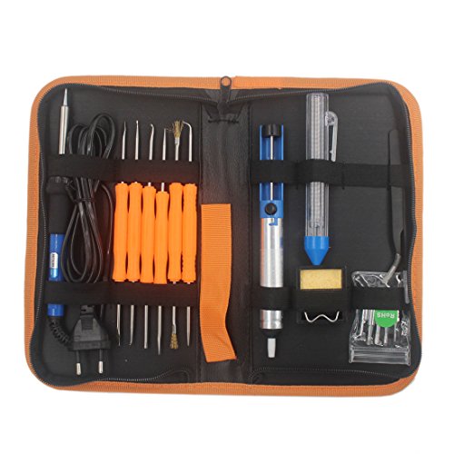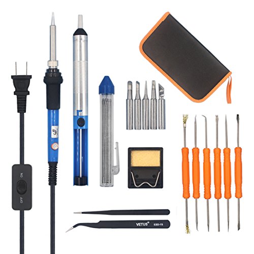 JOYLIT Adjustable Temperature Soldering Iron Kit 8 in 1- including 60W 110V Soldering Gun / Pen, 5pcs Various Tips, 6pcs Assist Tools, Soldering Sucker, Tool Box, Solder Wire, Tweezer and Stand