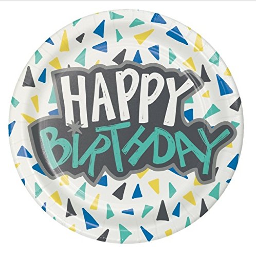 -. Feature : Celebrate your kid's birthday on trend with this fun on trend geo P.R.Int.  Displays festive shapes and designs that will provide a great atmosphere for the memorable occasion.  Set includes: -Geo P.R.Int tablecloth 54x84 inches regtangle -20 ct 9" Dinner Plates -20 ct 7" Dessert Plates -20 ct Napkins