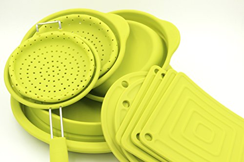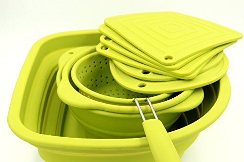Taousa 70435 Silicone Collapsible Dish Tub Washing Bowl Food Colander Hot Pad, Set of 10