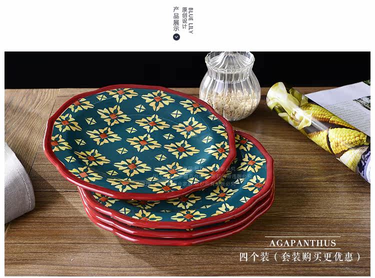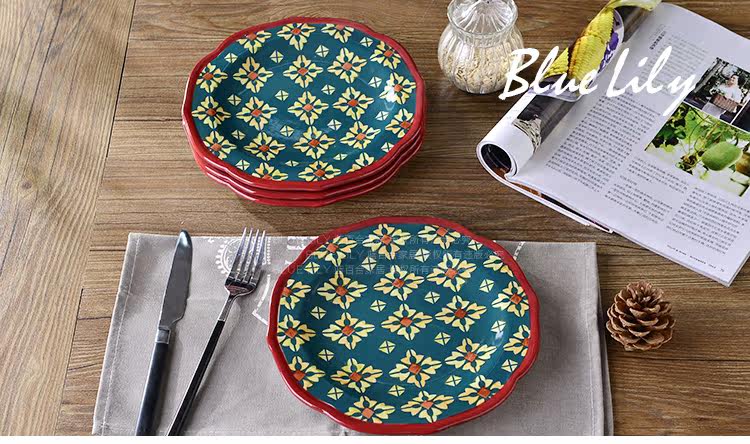 西式陶瓷碗碟牛排盘西餐点心盘菜盘花边意面盘餐具复古早餐盘