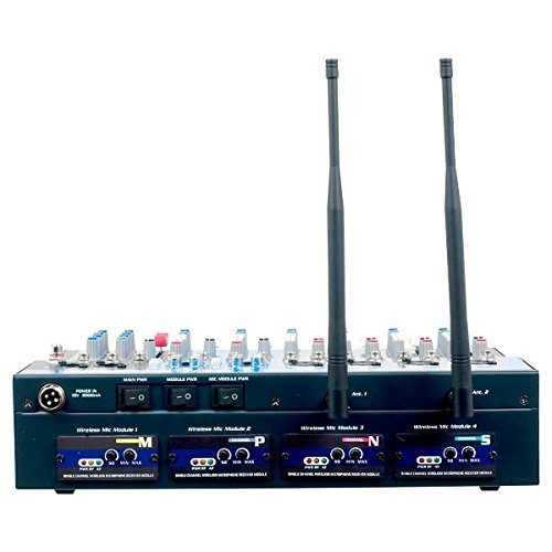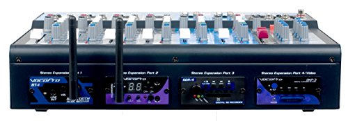 Studio : VocoPro Publisher : VocoPro Binding : Electronics Product Description Always running gigs in different locations? Want to shave time off your set up, or perhaps eliminate complicated wiring configurations on a rental system? VocoPro’s new Wireless Mix is the first All-In-One professional mixing solution: combining an 8 channel mixer, 4 onboard wireless microphones and 4 stereo expansion modules. The Wireless Mix-Ultra package ships fully loaded with 4 handheld wireless microphones and receivers installed. The front panel hosts the 4 Stereo Expansion Slots that includes all four of our optional Stereo Expansion Modules: these allow the Wireless Mix to stream programmed music from our BT-1 Bluetooth Receiver, play record MP3 files with the SDR-4, and playback MP3 G/ AVI media files to display both audio and video with the DKP-3. Then, the mixed audio can be wirelessly transmitted to a speaker system or set of powered speakers with the Air-Net 2 Audio Transmitter Receiver. You can say goodbye to all the complicated wiring and save space for additional audio equipment with the first All-In-One solution for professional PA mixing, the Wireless Mix-Ultra by VocoPro! 0