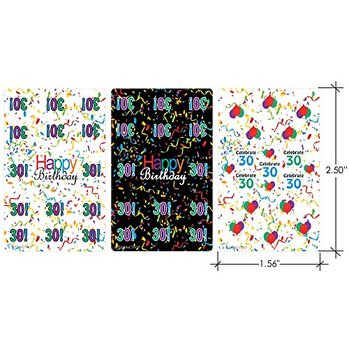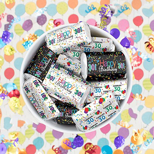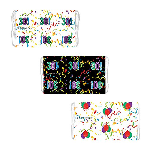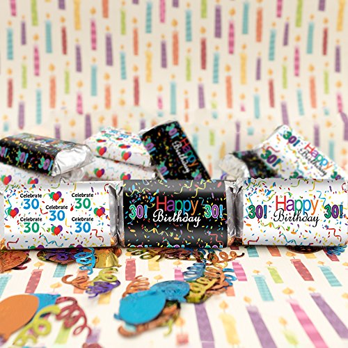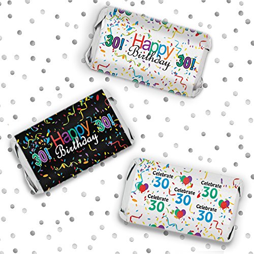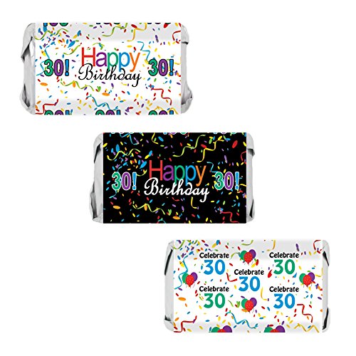30th Birthday Party Favors - Miniatures Candy Bar Wrapper Stickers - Multi-Colored (54 Count)