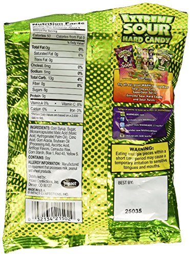 -. Feature : Warheads Extreme Sour Hard Candy / Contains (2) 2oz Bags / 5 Assorted Flavors: Watermelon, Blue Raspberry, Lemon, Black Cherry, Green Apple / Survive the sour, savor the sweet!