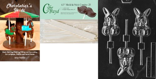 Cybrtrayd 'Bunny Lolly' Adult Chocolate Candy Mold with 25 4.5-Inch Lollipop Sticks and Chocolatier's Guide