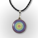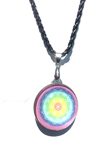 -. Title : Blume des Lebens Kette Amulett Anhänger in allen Chakrafarben, 3 cm x 3 cm , bunt, Glas mit Lederhalsband