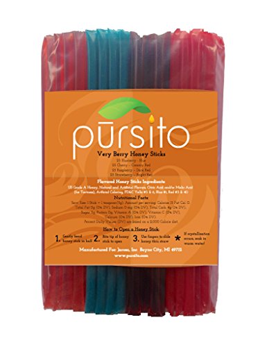 -. Feature : Grab the mini snack your friends and family will love! Set aside the messy honey jar, the clean up, and the inaccurate measurements. At 1 tsp per honey stick, these easily measured and perfectly proportioned sticks are a great healthy on the go snack with no mess and no packets. BURSTING WITH NATURAL FLAVOR these HoneyStix are a healthy and fun favorite for ages 2 and above. Also entertain with class by adding these as a compliment for your guests' tea. / Pursito VERY BERRY HONEY STICKS are as nature intended natural flavored and no additives. These honey sticks are locally produced in the Pacific States of the USA. As an all-natural product, small sugar crystals may form - to return to original state: heat slowly in a warm water bath until they disappear. / Pursito Brand Honeystix are 100% PURE DOMESTIC US GRADE A HONEY with natural flavors, 100% Natural, Made in Oregon, USA Perfect for snacking, sweetening drinks or foods and excellent for travel. There is no expiration or shelf life for honey. However, we recommend using within 1 or 2 years for best quality & flavor. / YOU WILL RECEIVE 100 Pursito Brand Very Berry Easy Open Honeystix in your purchase. SHIPPED in a heavy duty corrugated box to help ensure freshness, quality & a safe delivery. With thousands of happy customers, Pursito is a brand you will love and can trust! We stand by our product with a 30 day money back guarantee. / With limited supplies, simply scroll to the top of the screen and click the ADD TO CART button to be sure to get this special offer.