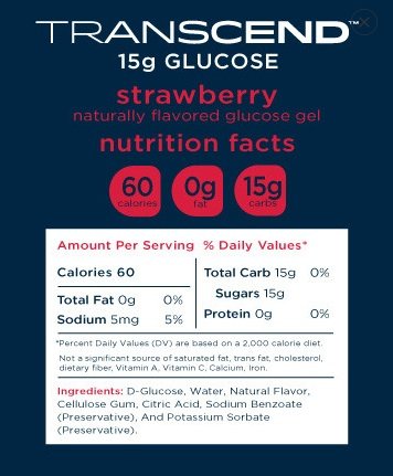TRANSCEND 15g Glucose Gel Strawberry - 3 Pack-1.1oz