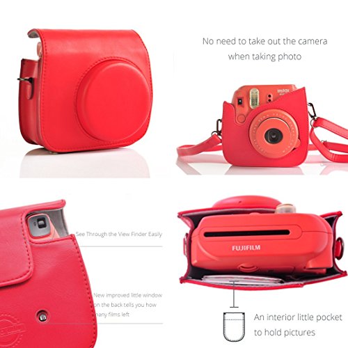 FUJIFILM INSTAX MINI 9/8+/8 INSTANT CAMERA ACCESSORY BUNDLES SET (included: Red mini 9/8+/8 vintage case bag/ instax mini book album/ mini 9/8+/8 self-portrait mirror/ colorful close-up lens(filter) / colorful photo frame/ colorful decor sticker borders/ wall decor hanging frame)