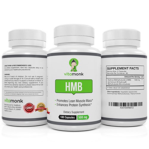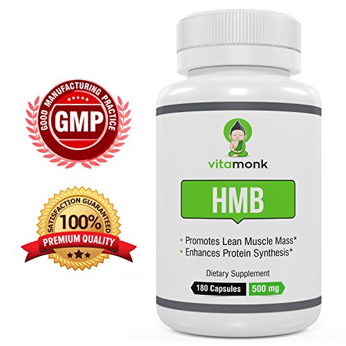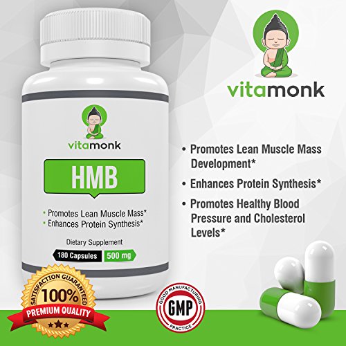 HMB by VitaMonk™ - Whopping 180 Capsules! Increase Lean Mass with Our Pure HMB Supplement - Faster Workout Recovery 500mg Per Capsule - 1000mg...
