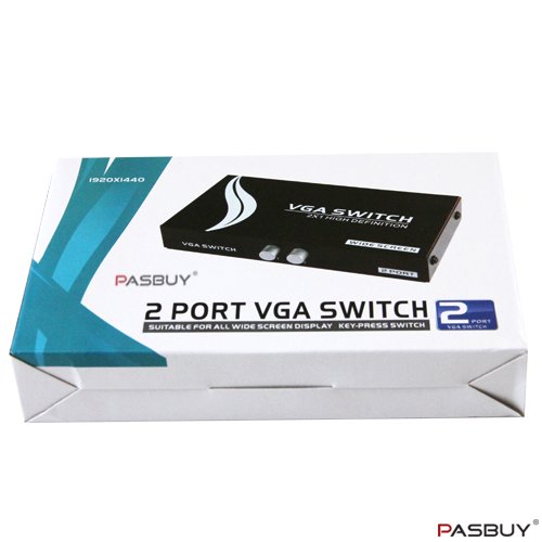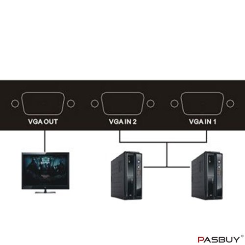 PASBUY® 2 Ports VGA SVGA Monitor Sharing Switch Box 2 In 1 Out For LCD PC TV Monitor