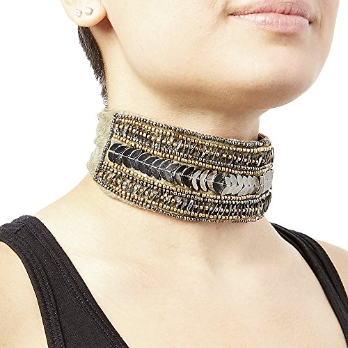 Product DescriptionBandana choker with a front pattern of metallic sequins and beads.0