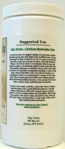 -. Binding : Misc. -. Brand : Clay Terra -. EAN : 0640791794032 -. Feature : Pure Calcium Bentonite Green Clay from the P.R.Istine Mojave Desert in California. No additives. / Clay Terra's pure calcium bentonite clay can be used internally and/or externally. / 9.7pH Clay Terra, a unique and rare, green swelling calcium Bentonite clay with Montmorillonite properties from the Smectite family of clays Laboratory-tested to show purity and safety for internal use. / finest powered drinking clay you can find 320 or better -. Label : Clay Terra -. Manufacturer : Clay Terra -. MPN : 2783575 -. PackageQuantity : 1 -. PartNumber : 2783575 -. ProductGroup : Beauty -. ProductTypeName : BEAUTY -. Publisher : Clay Terra -. Studio : Clay Terra -. Title : Clay Terra - Calcium Bentonite Clay 1 lb. food grade -. UPC : 640791794032