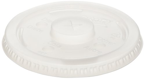 - Disposable translucent plastic drink-through lid with straw slots fits 12 oz., 14 oz., 16 oz., and 21 oz. Dixie Paper Cold Cups