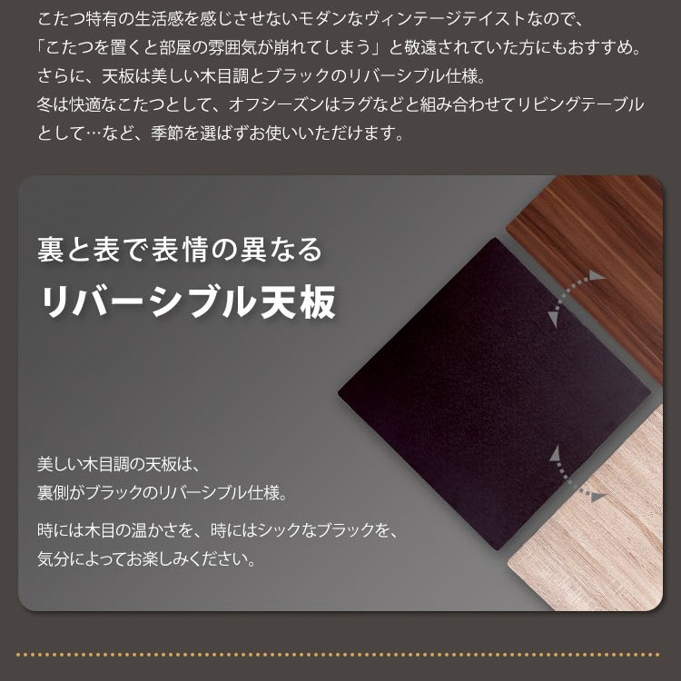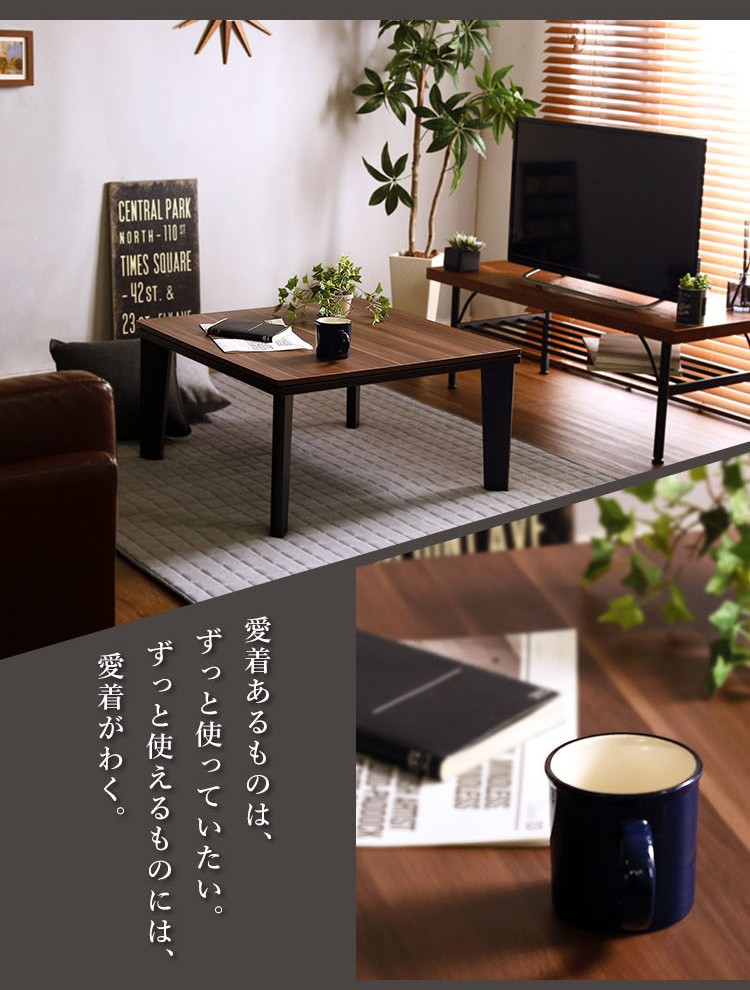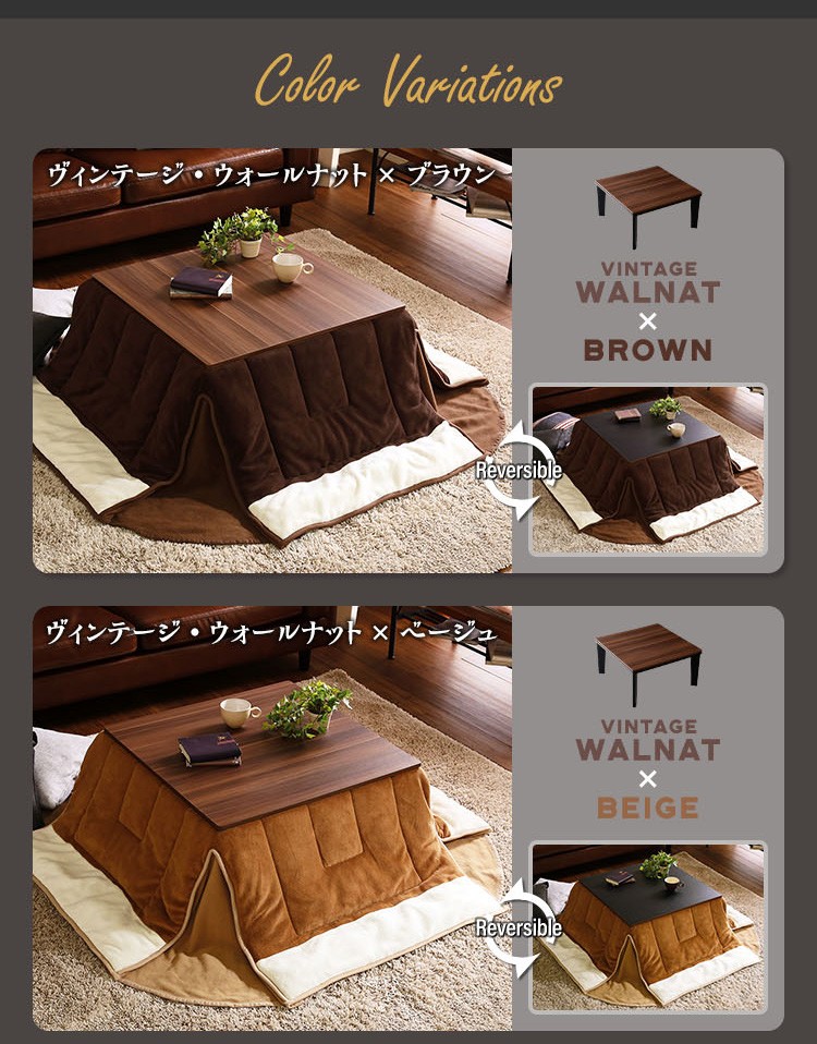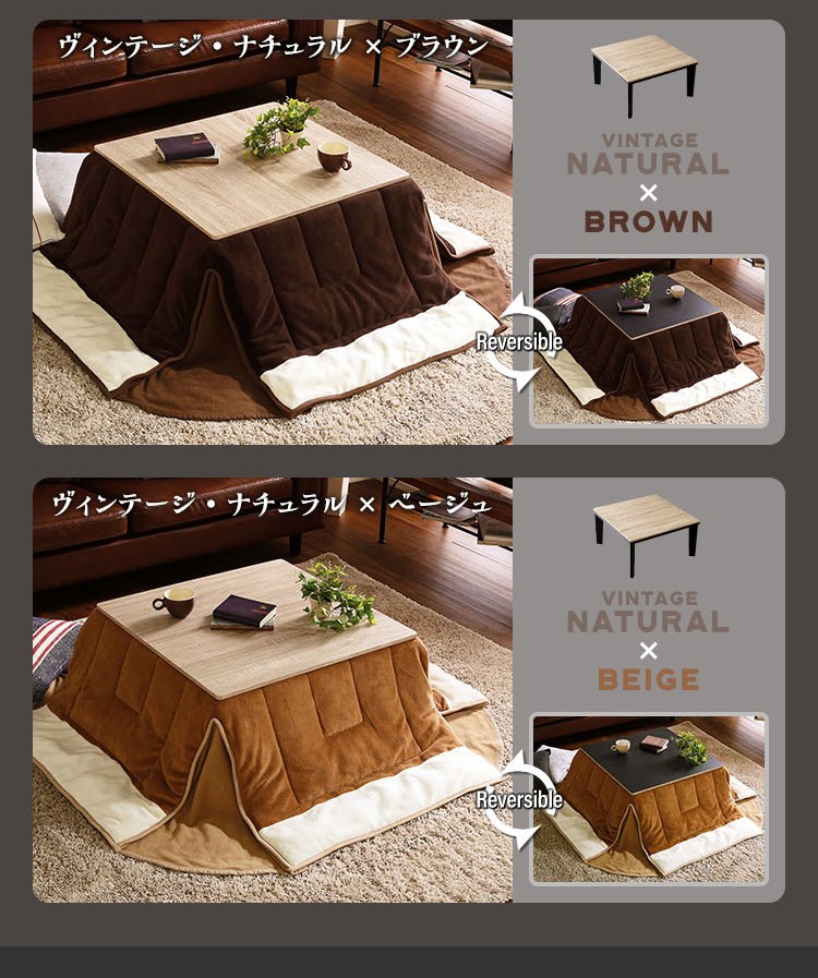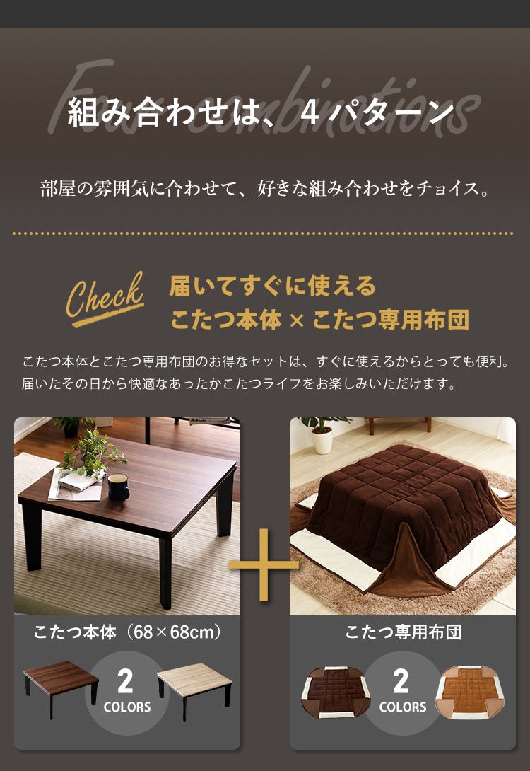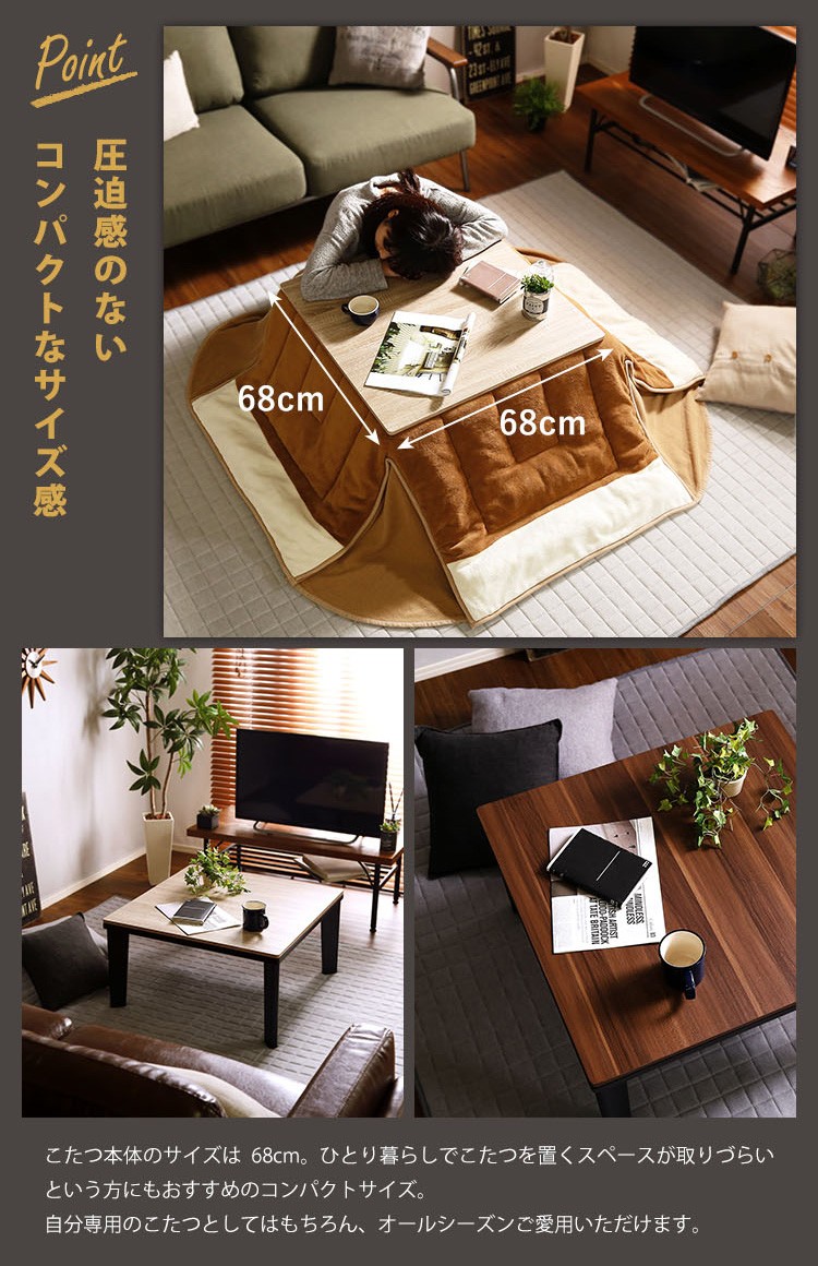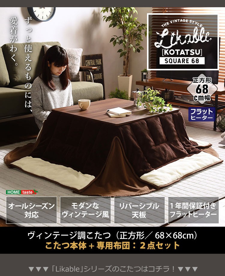 カジュアルこたつ ヴィンテージタイプ フラットヒーター付 68cm幅 正方形 【Likable -ライカブル-】シリーズ [SQUARE68] 肌触りが心地良い フリース生地 こたつ布団SET