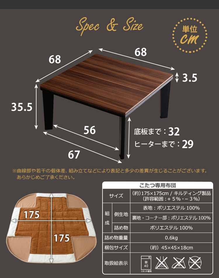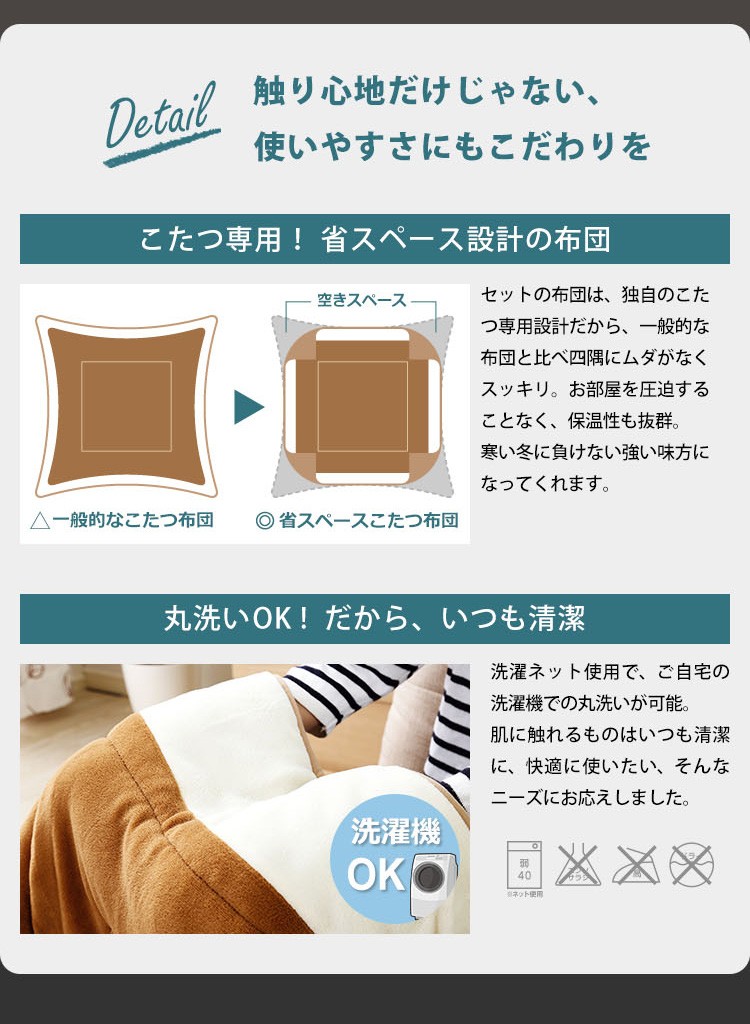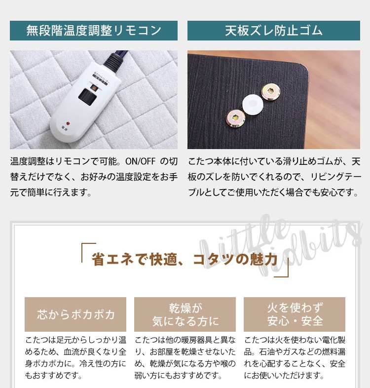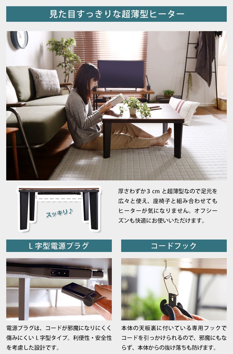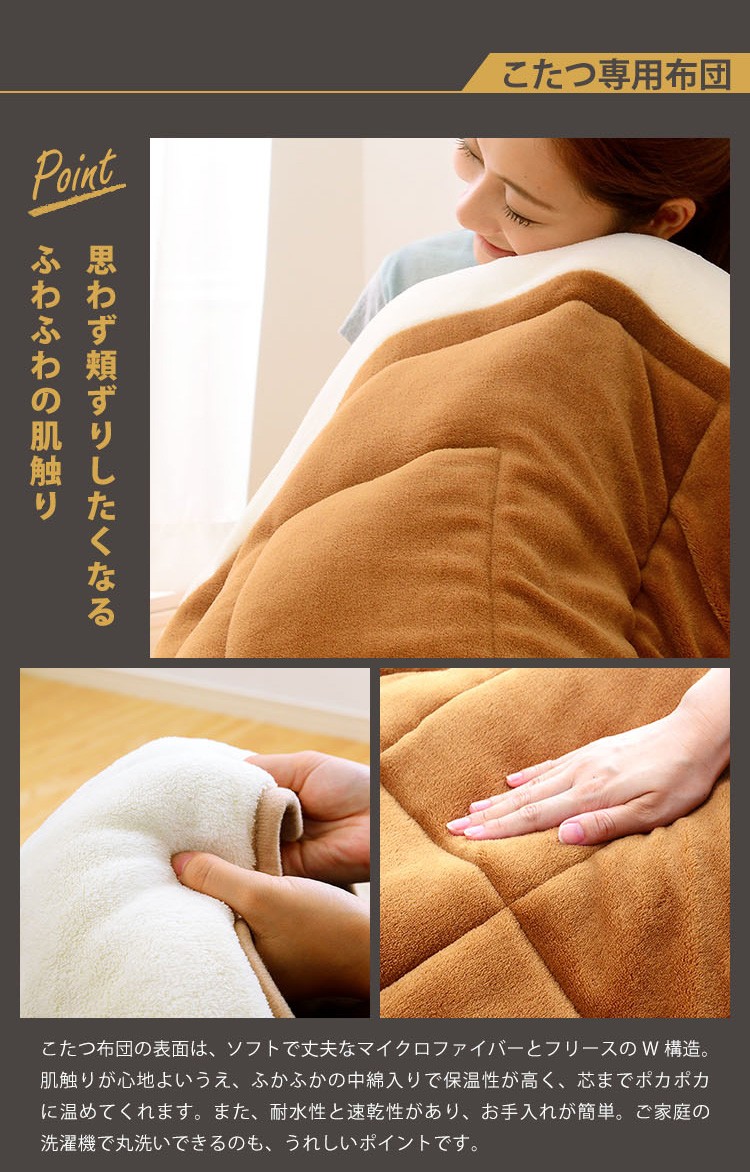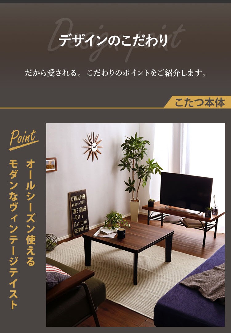 カジュアルこたつ ヴィンテージタイプ フラットヒーター付 68cm幅 正方形 【Likable -ライカブル-】シリーズ [SQUARE68] 肌触りが心地良い フリース生地 こたつ布団SET