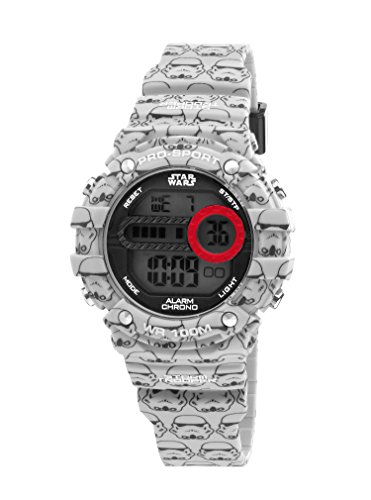-. Feature : Reliable Multi-Function Quartz Movement / 40 mm Plastic Case / Digital Display / 100 M Water Resistant / 22 mm Black/Grey Covered With Star Wars Storm Trooper Integrated Plastic Strap / Strap Length 7 Inches / TOP DIGITAL SPORTS FUNCTIONS: Stopwatch (Split Time / A Lap Time) / Dual-Time / Blacklight (Illuminates the display in the dark) / 12/24 Hour Format / Alarm & Chime / AM:PM International Warranty Included / Officially Licensed Disney Star Wars Watch