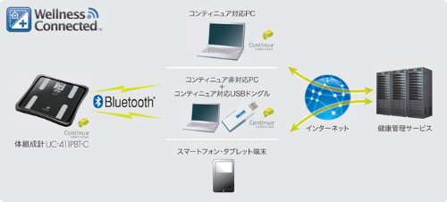 콘티《뉴아》규격 (Bluetooth HDP) 에 대응한 퍼스널 컴퓨터 등의 수신기기에 측정 데이터를 송신하고, 인터넷상의 건강관리 서비스에 데이터를 관리하는 것 를 할 수 있습니다.