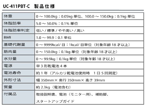체중,체지방율,기초 대사,근육량,수분량,BMI를 측정,표시 (※18 재미만의 설정 또는,체지방율이 범위 (5~50%) 다른 것의 경우,기초 대사량,근육량,수분량은 표시되지 않습니다.)